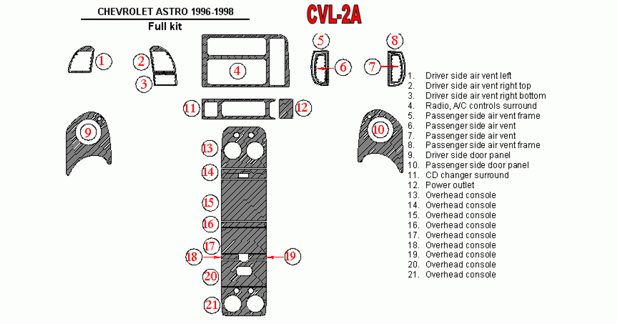Chevrolet Astro 1996 - 1998 Dash Trim Kit